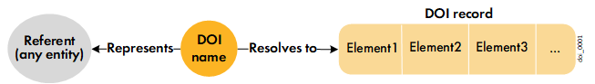 A DOI name can be resolved, through a Handle System service, to a set of elements, called the DOI record, as illustrated below. The DOI record usually contains a web address (or URL for Unified Resource Locator) representing an instance of the referent, and may contain services such as email, and one or more items of data about the referent (metadata).